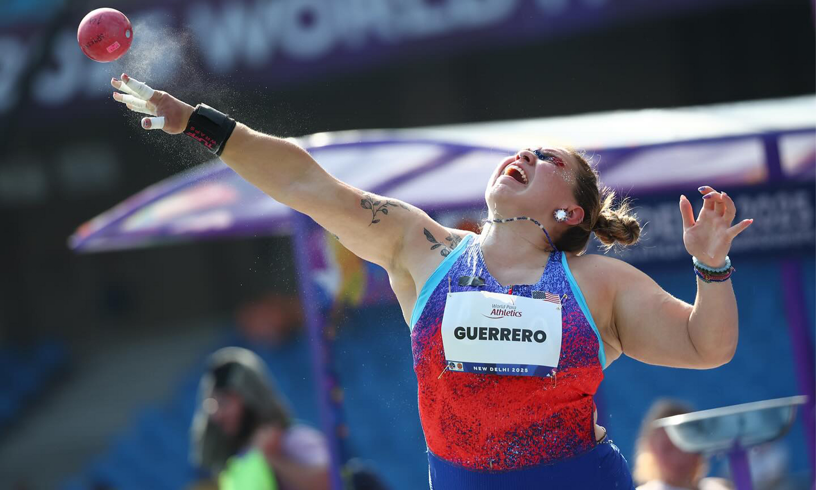 Alicia Guerrero competes in shotput and discus for San Diego State University and Team USA. She burst onto the para track and field scene in 2018, breaking Washington State records throughout her high school career. Guerrero was named to the 2022 National team for shot put. In 2023, she made her international debut at the Para Pan American Games in Santiago, Chile, earning her first international medal, a bronze in the F64 discus throw.