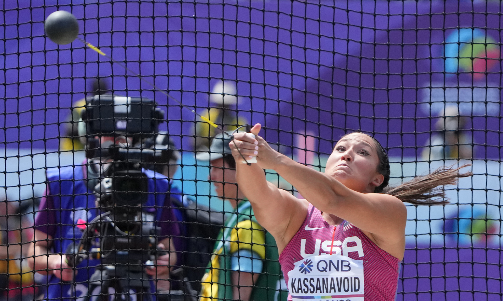 Janeé Kassanavoid is among the world’s elite in the hammer throw. At Kansas State, she was a three-time Big 12 Champion, four-time All-American, and a school record holder. In 2022, Kassanavoid became the first Indigenous woman to medal at the World Athletics Track and Field Championships, winning bronze, and returned to the event in 2023 to win silver.