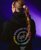 Uni-sex | LOVB Logo with "RE-IMAGING THE FUTURE OF WOMEN'S SPORTS" Line Graphic & TOGETHXR X Logo | Large "EVERYONE WATCHES WOMEN'S SPORTS" Circle Text with Logo'd LOVB Volleyball In Center with TOGETHXR & LOVB Logo Under| 80% Cotton 20% Polyester | 15 OZ Brushed Fleece | Oversized Drop Shoulder | Pigment Dye