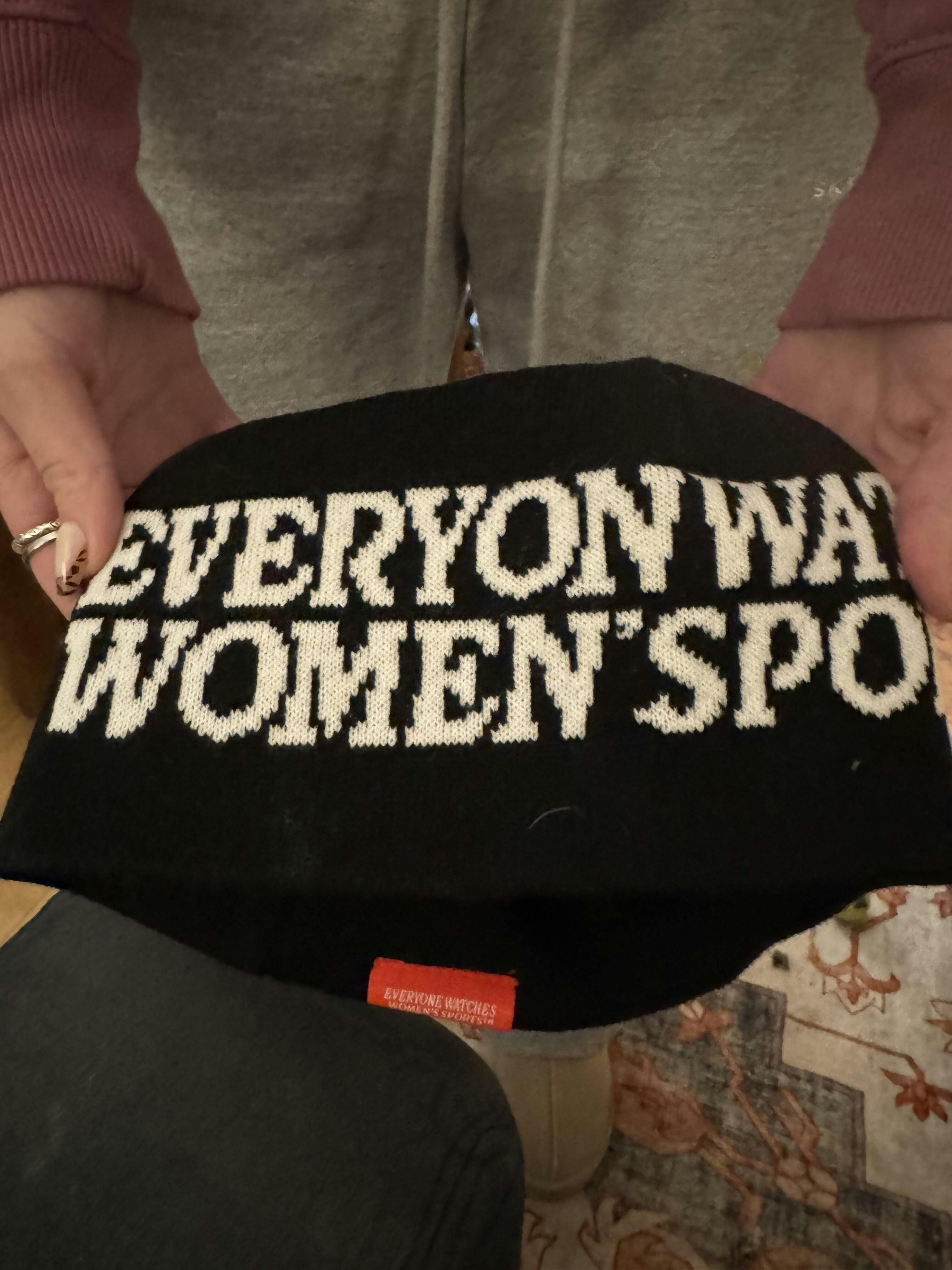Wrap around"Everyone Watches Women's Sports" in white text with TOGETHXR logo | 100% Acrylic | Jacquard Knit | Uni-Sex